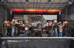 Die Turmbläser der Trachtenkapelle setzten wie jedes Jahr den musikalischen Schlusspunkt und spielten nach dem Einbruch der Dunkelheit bekannte weihnachtliche Weisen von der 40 Meter hohen Galerie des Kirchturms.
