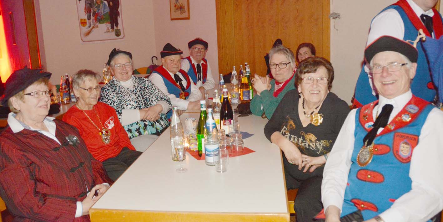 Am Ehrentisch feierten (von rechts) Ehrenzunftmeister Andreas Oberle und seine Frau Luise, Martina Nessler, Narrenrat Markus Strauß, Alt-Narrenrat Eugen Zimmerer und seine Frau Monika., Brigitte Gießler und Annemarie Huber.