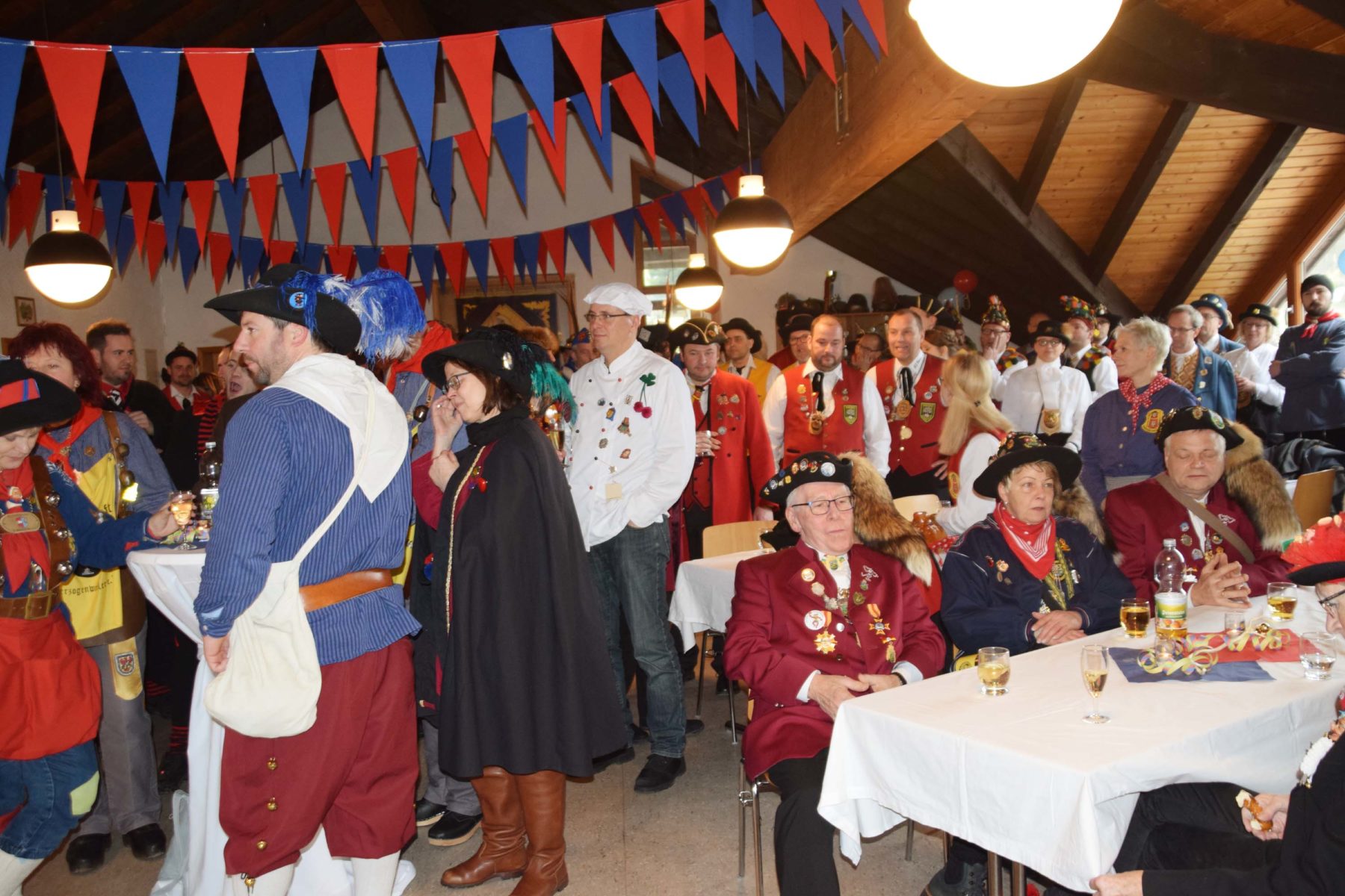 Nein. Wir haben im Amtsblatt und über die Presse Betreiber für Zelte, Straußen und Buden gesucht. Insgesamt vierzehn Vereine, Fasentgemeinschaften und Privatpersonen im Narrendorf und weitere zehn entlang der Umzugsstrecke haben sich teilweise recht schnell bereit erklärt, die Zunft zu unterstützen. Auch beim Alpenverein gab es kein Zögern, als er gefragt wurde, ob er am Sonntag, ab dem Mittag, in der Halle die Bewirtung übernehmen könnte. Die Feuerwehr Nordrach stand uns tatkräftig zur Seite sowie die Gemeinde, von der wir viel Unterstützung und Hilfe bekamen.