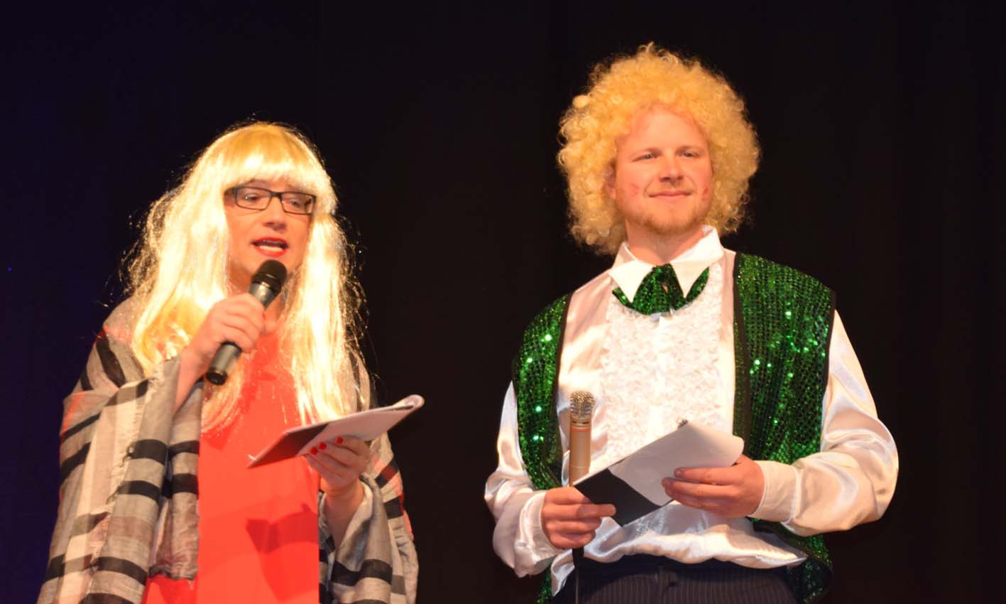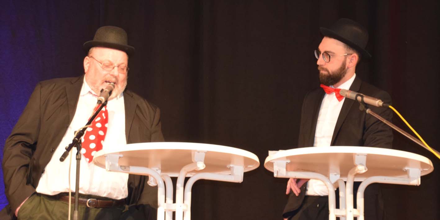 Dick und Doof (Josef Bruder und Björn Späth) sind seit Jahren ein eingespieltes Team und nahmen sich und andere auf die Schippe – gleich zweimal, vor und nach der Pause. Sie berichteten witzig und wortgewandt von vielen Vorkommnissen im Tal. So könne man im Clubheim mit Heuballen bezahlen und sie beide müssten einen Charakter haben wie ein Stuhl, »wir müssen mit jedem Arsch klarkommen!«