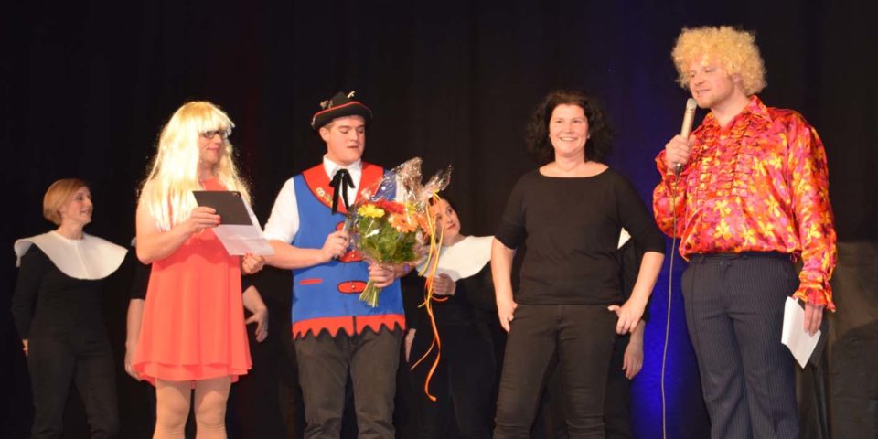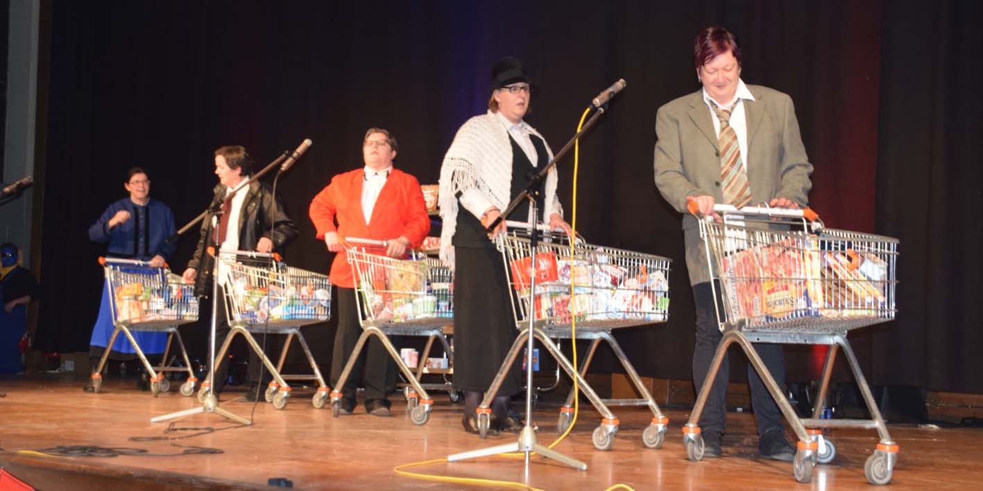 Ein absoluter Höhepunkt war der Auftritt der »Aldi Wieber«. Fünf Frauen standen im Lebensmittelgeschäft Herbrik vor der Kasse. Ihr Ruf »Bruno, moch endlich d’Kass uff«, blieb ungehört. Köstlich, wie die Wieber die Ungeduld und Schläue von einigen Kunden darstellten. Ein Riesenapplaus war ihr verdienter Lohn.