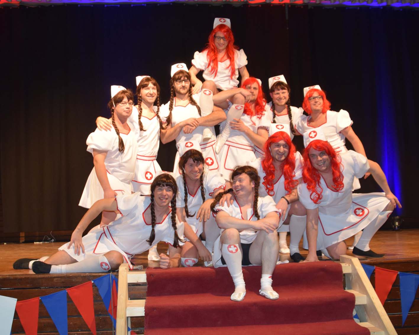 Den Schlusspunkt vor der Pause setzte das LTG-Männerballett. Einstudiert unter der Leitung von Katrin Götze wirbelten die Männer als Krankenschwestern über die Bühne und boten eine temporeiche Show. Auch sie durften erst nach einer Zugabe die Bühne mit viel Beifall verlassen.