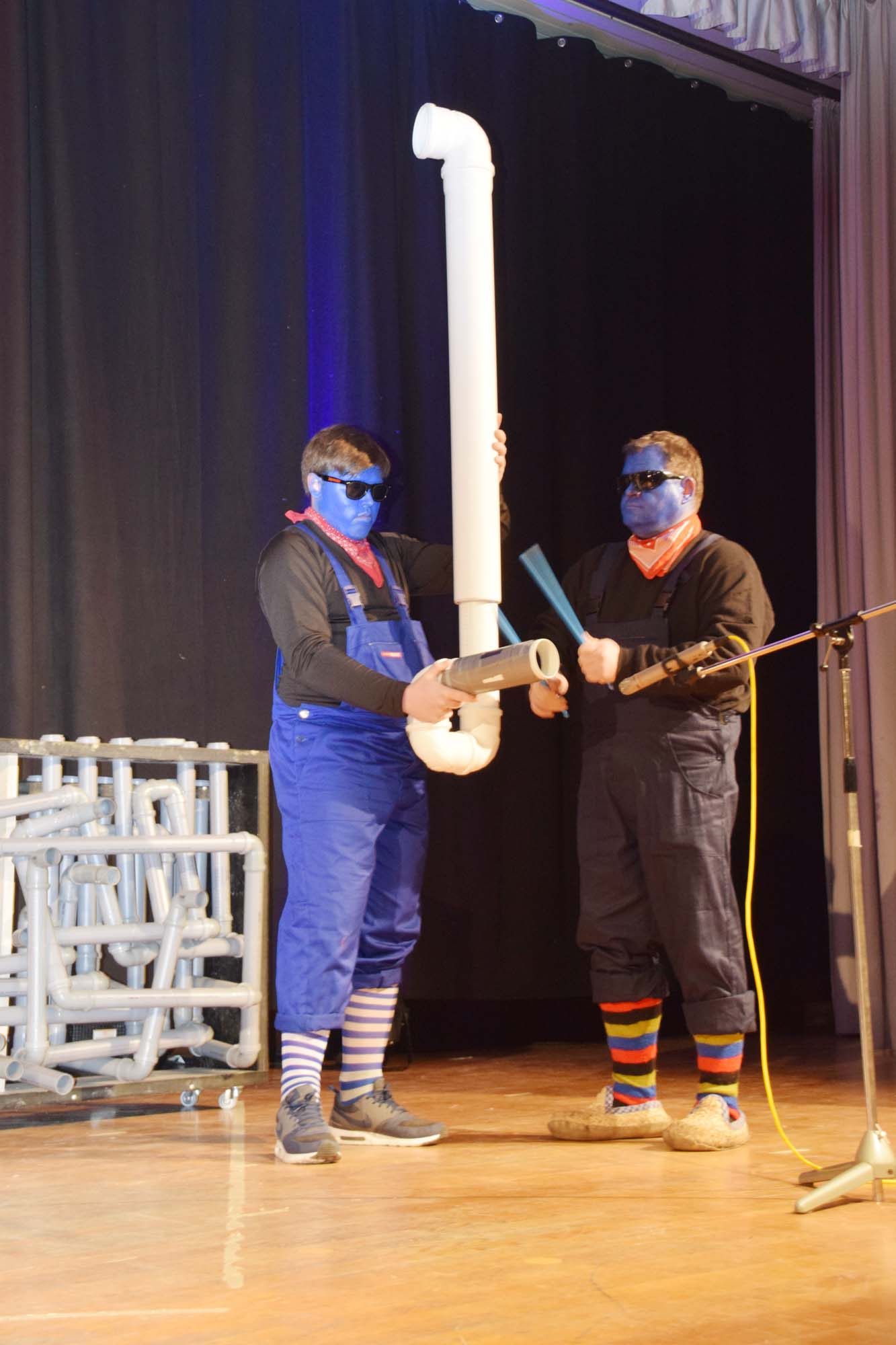 Einen besonderen musikalischen Auftritt boten die »Blaumänner«. Ihre Instrumente? Weder Geige noch Cello, weder Klarinette noch Saxophon. Sie waren alle nur aus Plastik: Abwasserrohre, Eimer, Flaschen und Röhrchen. Die Blaumänner konnten tatsächlich darauf Melodien trommeln und ließen sogar eine Abwasserrohr-Zugposaune erklingen. Einfach genial.