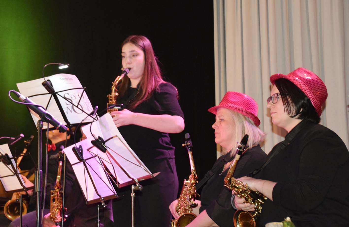 Ein Ohrenschmaus folgte mit »Concertino« von André Waignein, das der Solistin Lara Hübel Gelegenheit bot, ihr Können auf ihrem Es-Alt-Saxophon zu zeigen. Sie spielte mit Leichtigkeit und einfühlsam die Soli und erhielt am Ende tosenden Applaus.