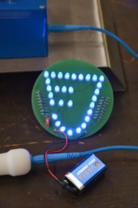 An einer Werkstation in der Lehrwerkstatt konnten die Jungen und Mädchen auf einer vorbereiteten Platine LED-Leuchten verlöten. Die Auszubildenden und die Ausbilder der Firma Junker gaben dabei die notwendige Hilfestellung. Nach erfolgreicher Arbeit leuchtete das Junker-Logo auf.