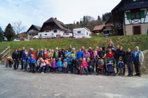 Bei herrlichem Wetter trafen sich 16 Kinder und 42 Erwachsene beim Sportplatz. Von hier aus ging die Wanderung zum Hasjagen in den Ruhlsbach. Die Familie Willmann erwartete die Hasenjäger bei ihrer Hütte. Der Osterhase konnte den Ansturm kaum bewältigen.