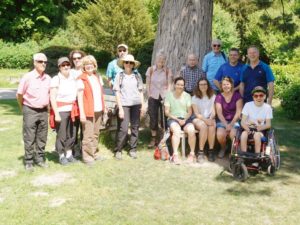anderen Baumsorten. Beein­druckend waren die großen Mammutbäume, fast schon glaubte man in Kalifornien zu sein. Weiter ging es durch Hohlgassen zum Essen in den Martinshof. Nachdem alle gut gespeist hatten, war der Rückweg durch Reblandschaften mit Blick nach Freiburg und auf den Hochschwarzwald ein schöner Abschluss. Alle bedankten sich bei Wanderführerin Frau Dorothea Kluckert für die erlebnisreiche Wanderung.
