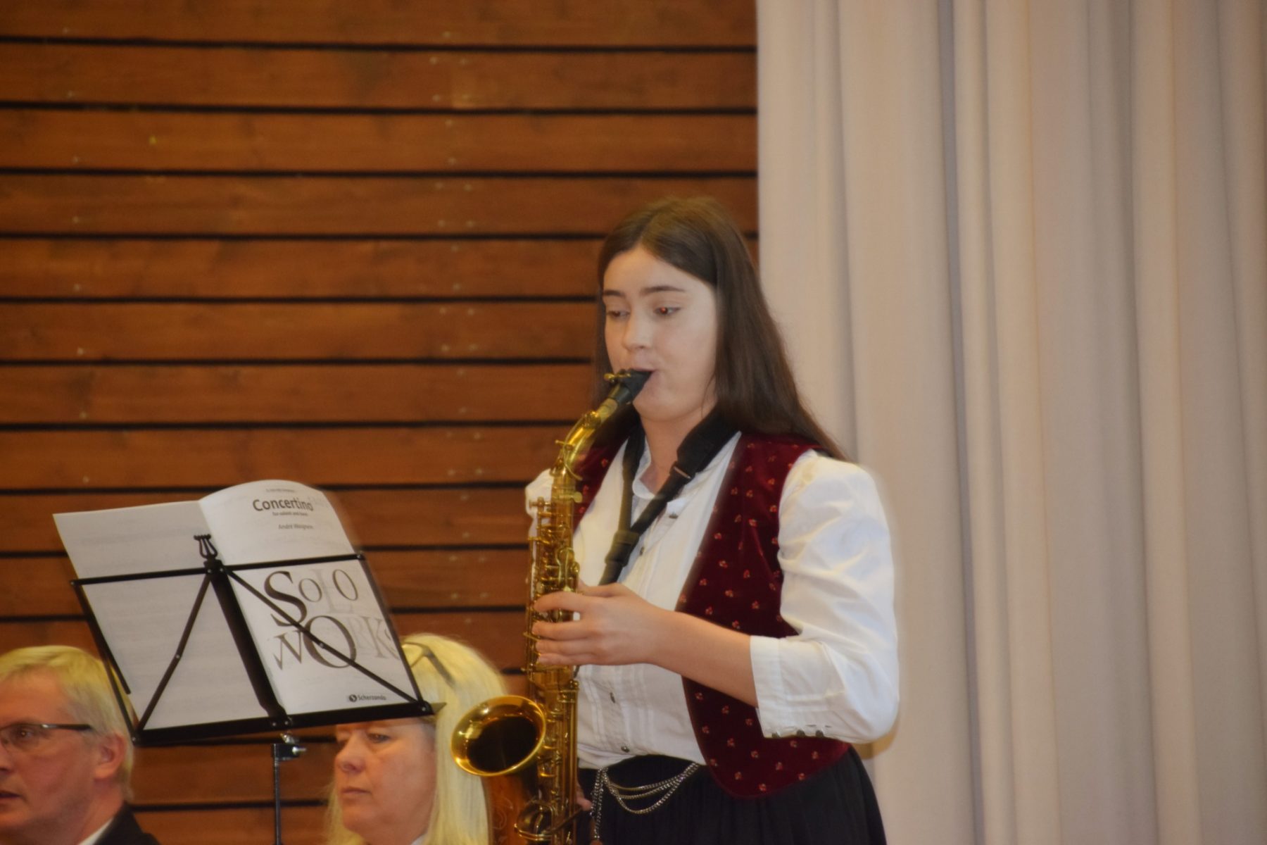 Es erklangen Film- und Musicalmelodien, Lara Hübel begeisterte bei »Concertino« mit ihrem Solo auf dem Altsaxophon, dann folgten Polka- und Marschmusikstücke und mit dem auch gesungenen »Badnerlied« beendete die Kapelle das abwechslungsreiche und stimmungsvolle Konzert. Alle Besucher erfreuten sich an den temperamentvoll vorgetragenen Musikstücken und dankten den Musikern mit einem kräftigen Applaus.