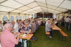 Am Samstagabend war das Festzelt gut besetzt. Alleinunterhalter Markus aus Freiburg spielte Tanz- und Stimmungsmusik. Am Sonntagmorgen nach der Fronleichnamsprozession spielte der Gitarrenverein unter Leitung von Stefanie Nock zum Frühschoppenkonzert auf. Das Festzelt war ebenfalls wieder gut besetzt und auch die beschatteten Plätze unter den Platanen waren begehrt.