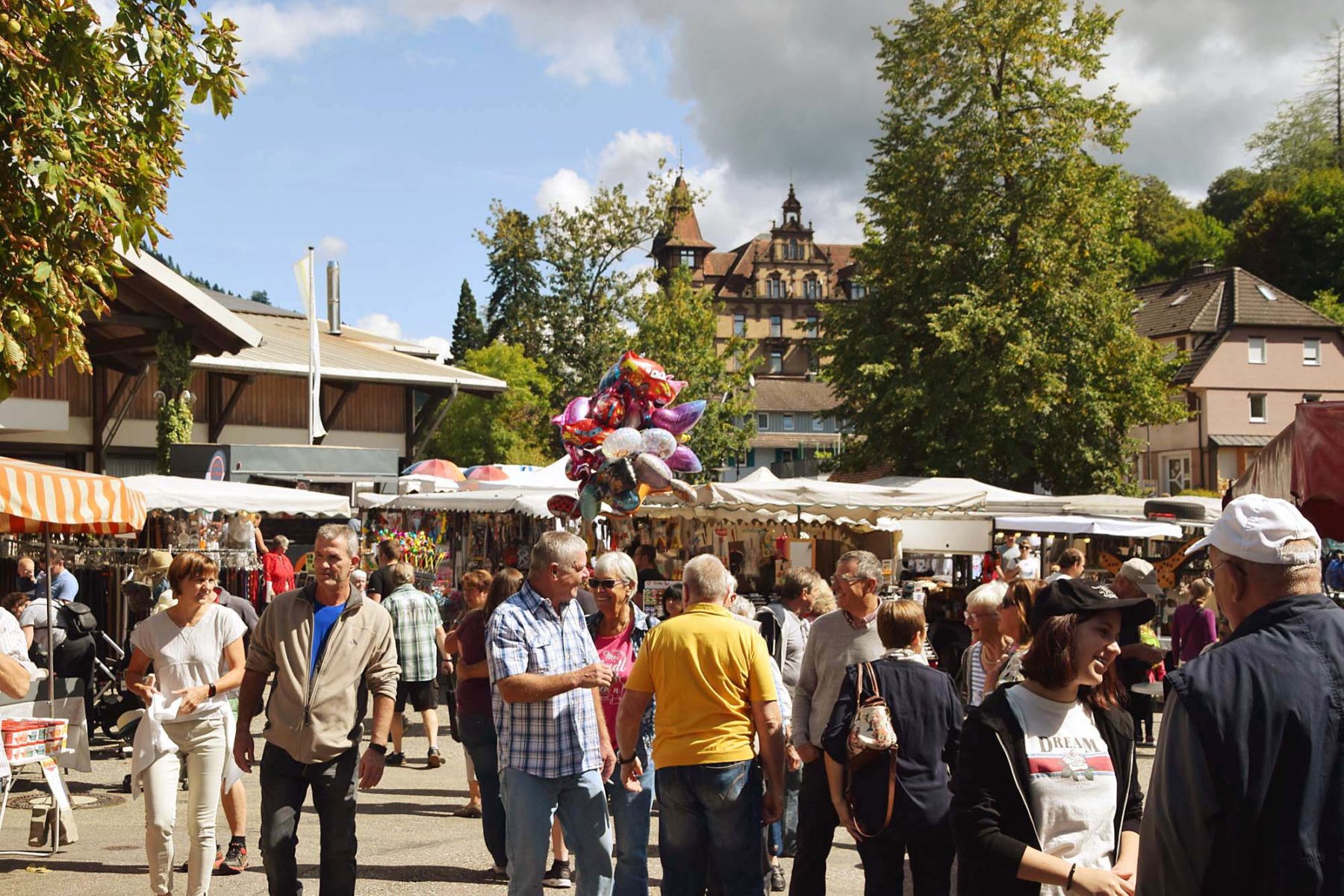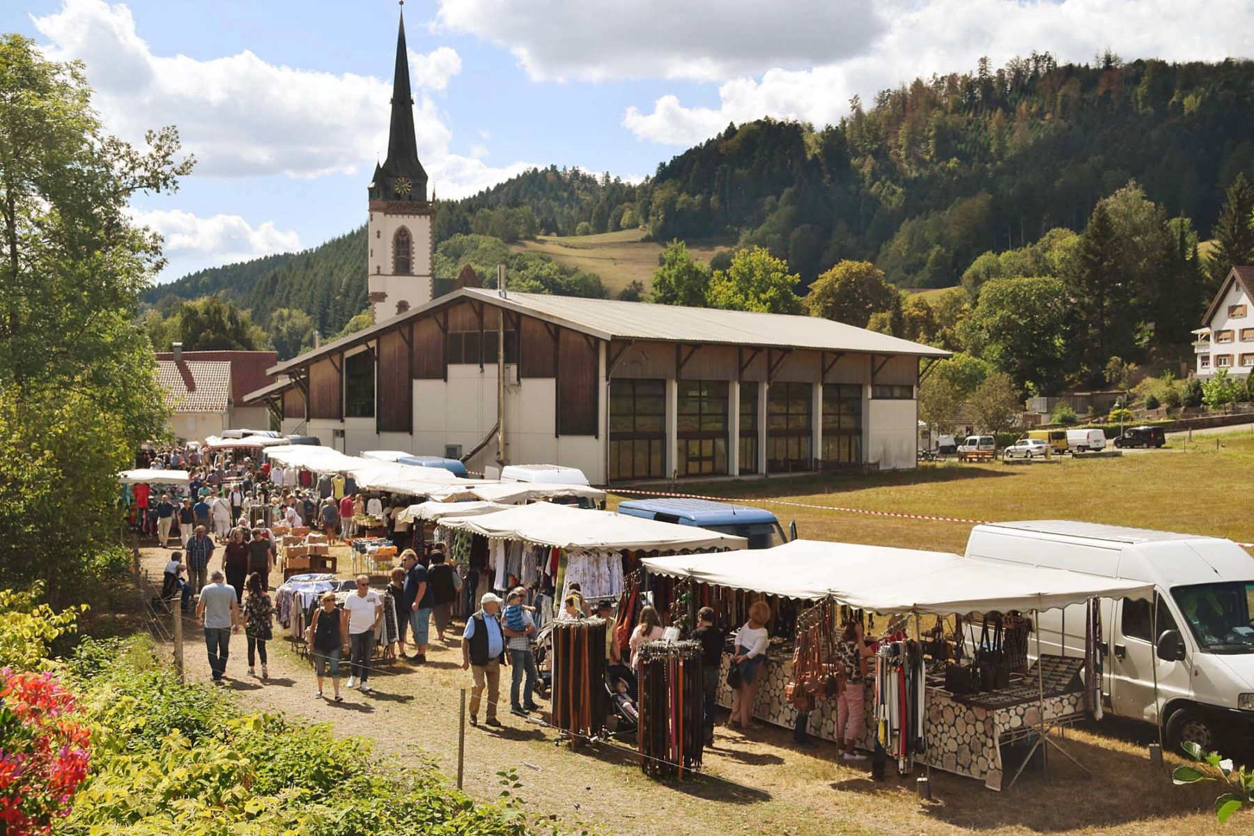 Am Sonntagmorgen strahlte die Sonne vom Himmel und das Dorf war in Feststimmung. Rund um die Kirche, vor und hinter der Hansjakob-Halle standen die bunten Verkaufsstände der Händler. Im Festzelt spielte die Trachtenkapelle Oberwolfach zum Frühschoppenkonzert auf; ihr folgten später die Fidelios und zum Abschluss die Musikkapelle Unterentersbach.