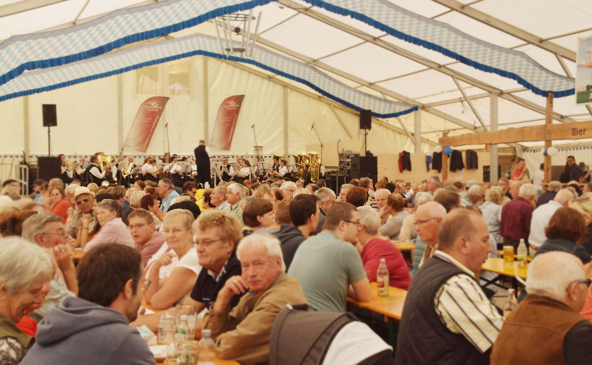 Bereits am späten Vormittag strömten die Gäste in großer Zahl aus nah und fern herbei. Zum Mittagessen war das Festzelt voll besetzt, auch die zahlreichen im Freien aufgestellten Garnituren waren begehrt. Die Mitglieder der Trachtenkapelle hatten alle Hände voll zu tun, um die Gäste mit Speisen und Getränken zu versorgen. Neben den Kilwi-Klassikern Hähnchen und Steaks gab es diesmal auch schmackhafte Kilwi-Burger und bunte Salatteller.