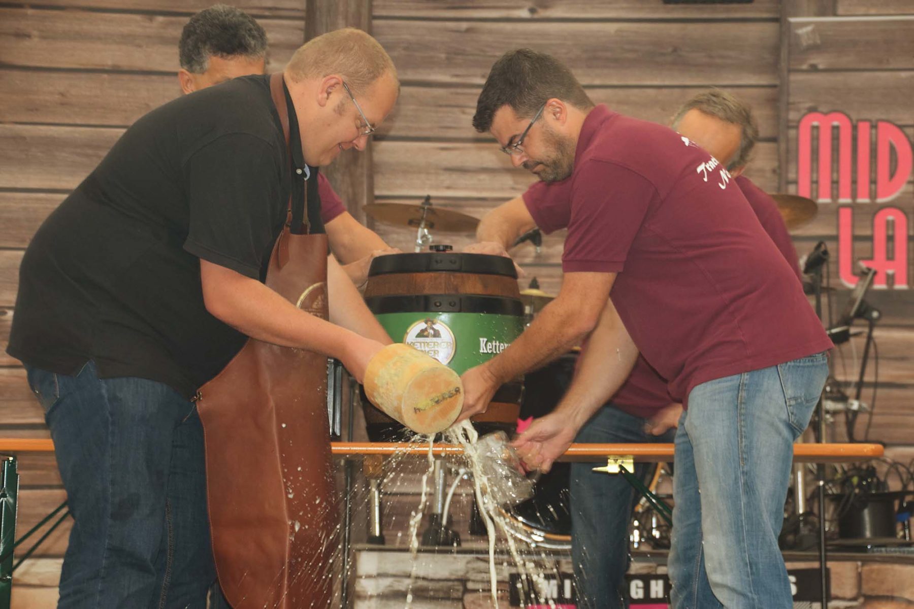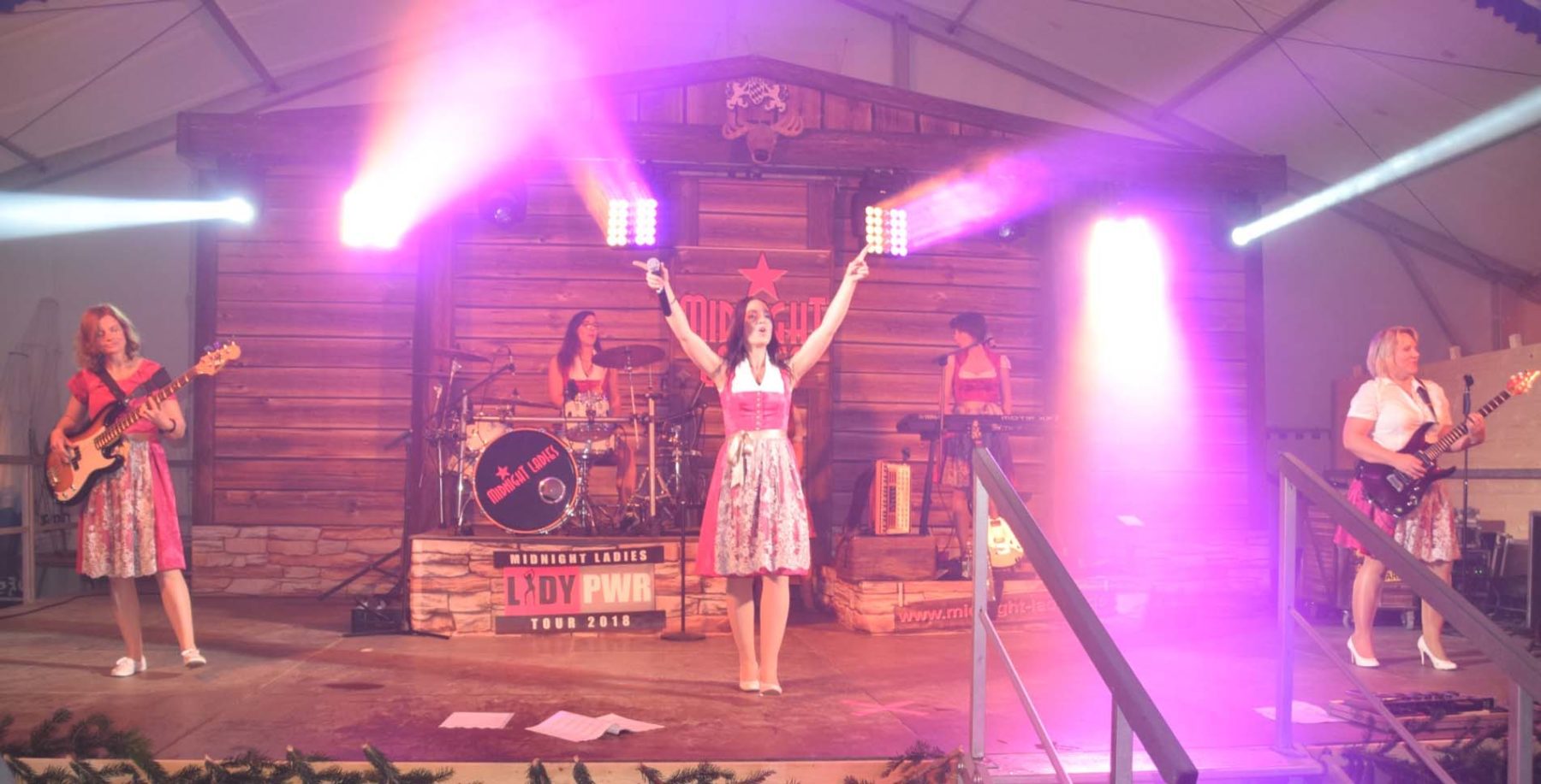 Am Samstag eröffneten Bürgermeister Carsten Erhardt und der Vorsitzende der Trachtenkapelle Oliver Vollmer den Festabend mit dem Fassanstich. Das von der Trachtenkapelle gespendete Fass Freibier war schnell geleert. Ab 19.30 Uhr spielte die bayerische Frauenband »Midnight Ladies« auf. Mit ihrem fünfstündigen Programm heizten die sechs Musikerinnen den zumeist in Tracht gekleideten Besuchern im voll besetzten Festzelt kräftig ein. Viele Besucher standen bald auf den Bänken, manche gar auf den Tischen und klatschten, schunkelten und sangen mit. Die sechs Ladies boten auch ein prächtiges Bild und spielten alles, was für Stimmung sorgen kann, Hits aus der Rock- und Popmusik, Ballermann-Ohrwürmer, Schlager-Oldies bis zu den neuestens Chartbreakern.