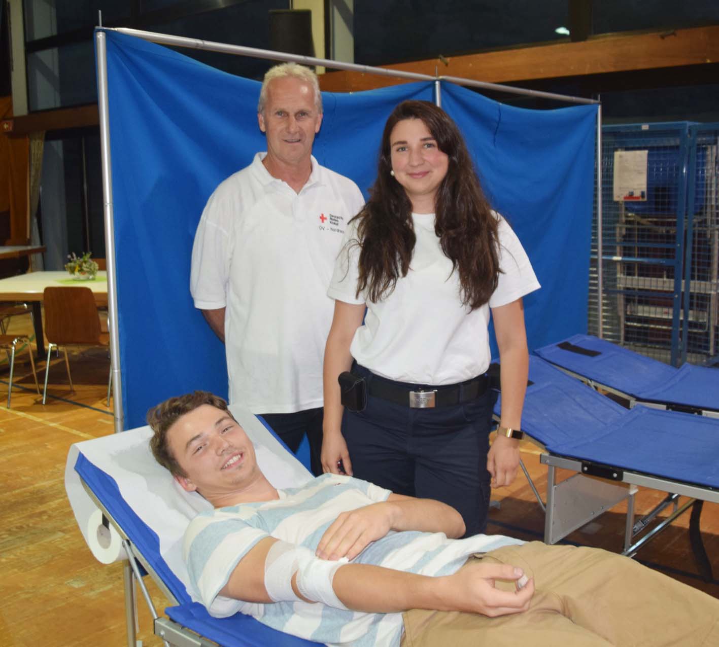 Am vergangenen Donnerstag waren vom frühen Nachmittag bis in die Nacht hinein vierzehn Nordracher DRK- und fünf Jugend-DRK-Mitglieder im Einsatz, unterstützt von sechs Mitgliedern des Zeller DRK-Ortsvereins. Das Blutentnahmeteam des DRK war wieder mit einem »großen Team« gekommen, drei Ärzten und sechs weiteren Mitarbeitern.