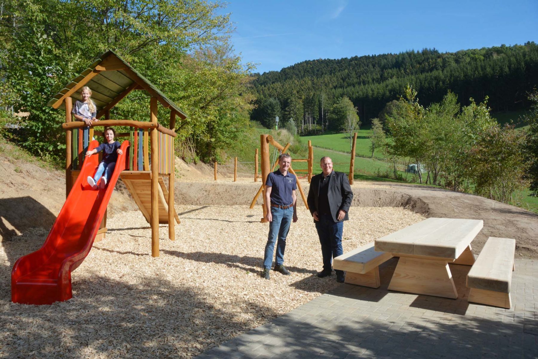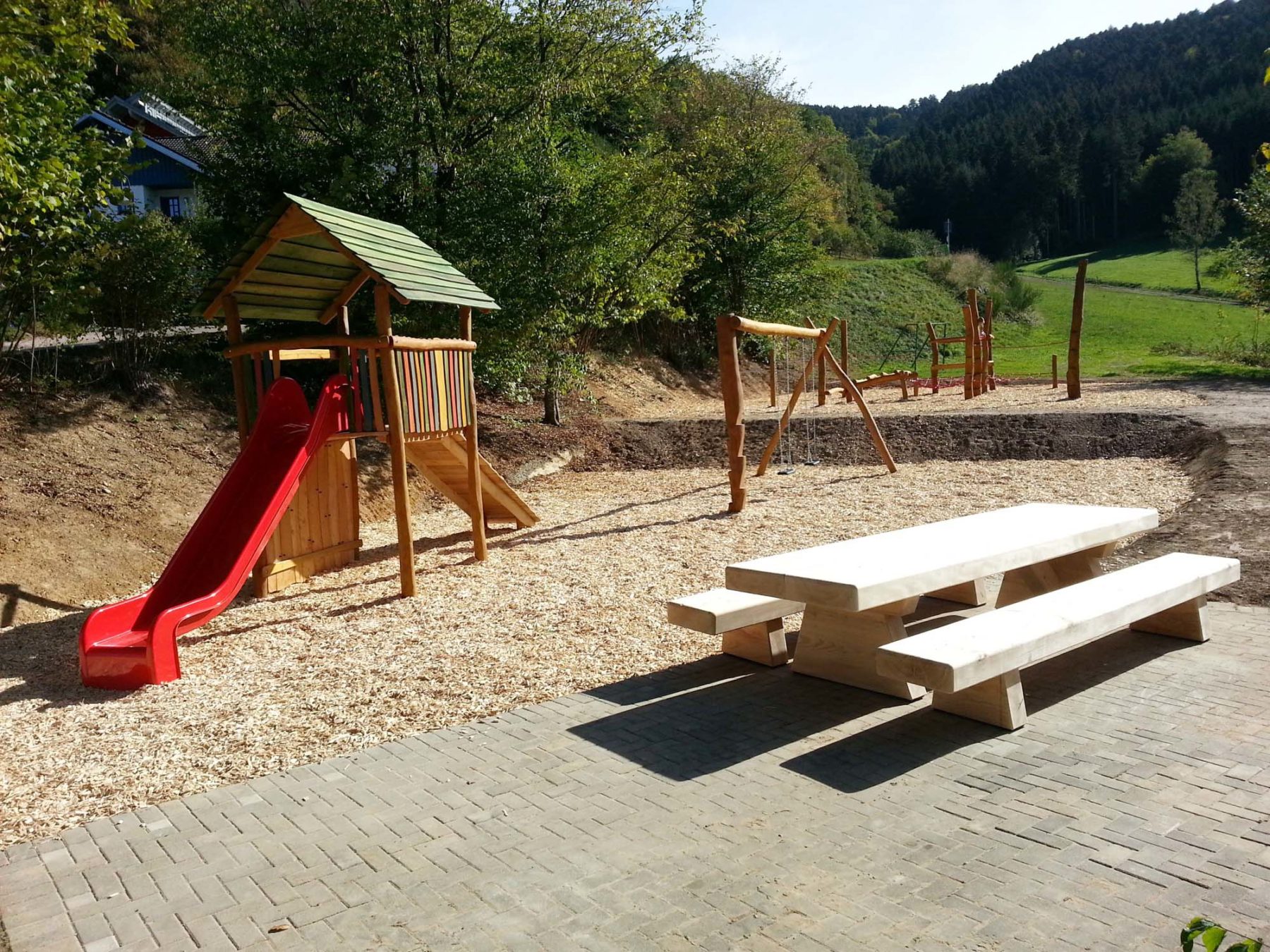 Der Kinderspielplatz im Wohngebiet Grafenberg wurde komplett neu gestaltet. Unternehmer Manuel Echtle hat die Spielgeräte und eine große Sitzbank aus Weißtannenholz gespendet. Der Bauhof der Gemeinde Nordrach hat das Gelände wieder auf Vordermann gebracht.