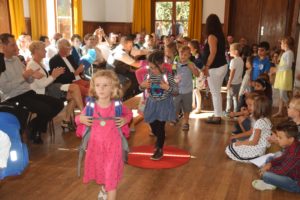 Anschließend begleiteten die Eltern, Großeltern, Paten und Verwandten ihre Kinder zur Turnhalle der Grundschule. Dort wurden sie vom
