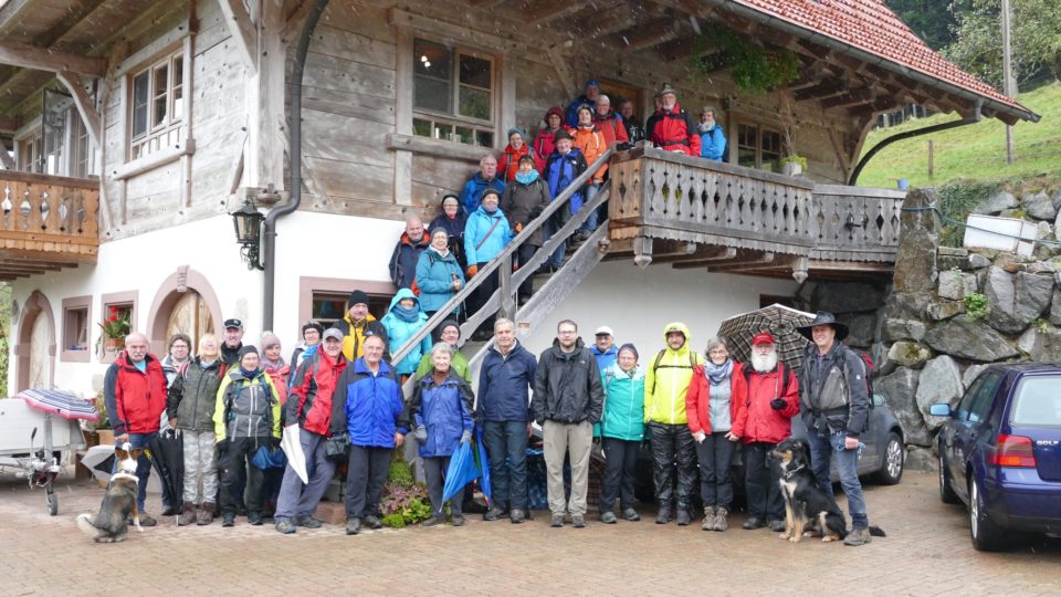 Obwohl der Wetterbericht keine gute Wetterprognose vorausgesagt hatte, trafen doch 37 Personen am Treffpunkt bei der Zimmerei Lehmann in Unterharmersbach ein. Nach der Begrüßung durch den Tourenführer Gottfried Lehmann begann die Wanderung im leichten Nieselregen.