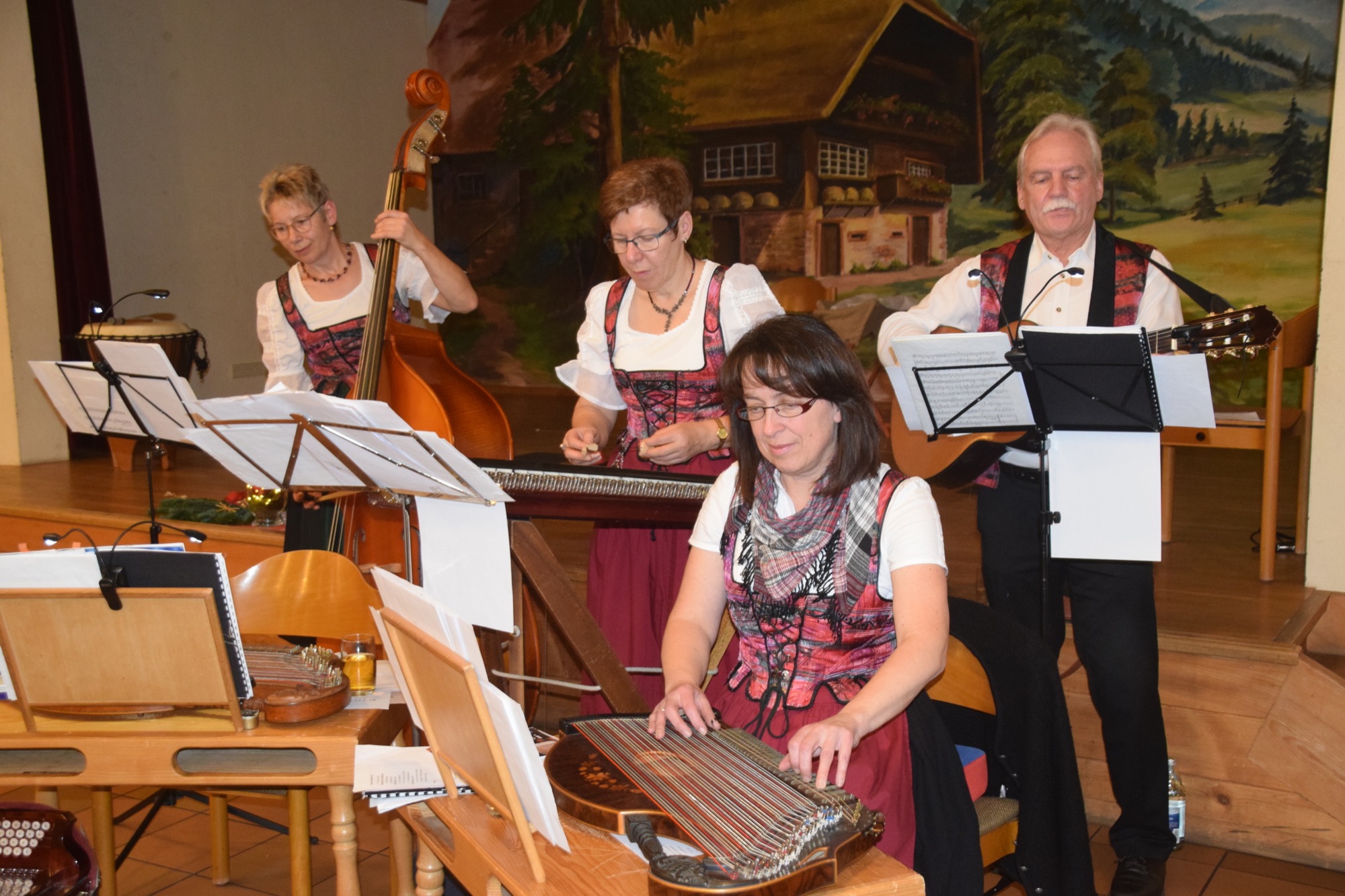 Foto: Herbert VollmerRund siebzig Seniorinnen und Senioren, darunter auch Bewohner der Median Klinik St. Georg, waren ins Pfarrheim gekommen. Die Nordracher Stubenmusik – Luitgard Bieser, Antonia Haas, Susanne Hansmann und Georg Wimmer – umrahmte den gesamten Nachmittag musikalisch. Sie sorgte mit ihrem Spiel und Gesang für eine wunderbare adventliche und weihnachtliche Stimmung.