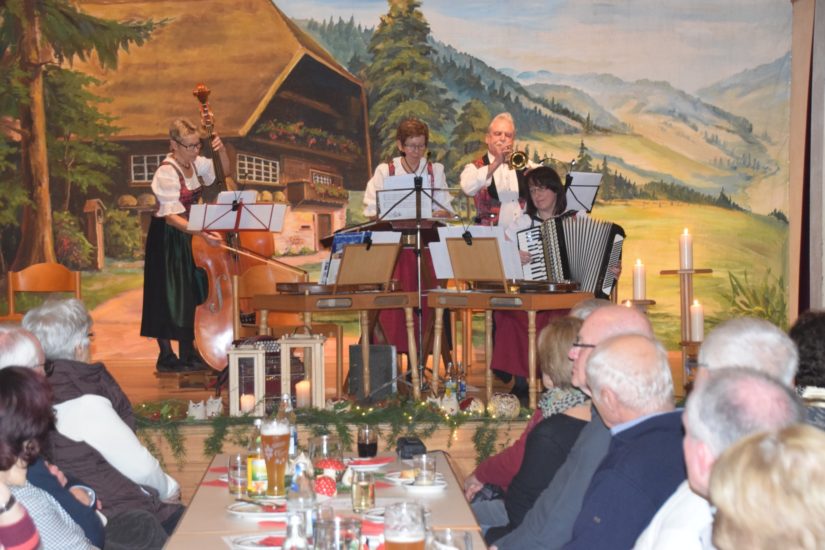 Am Freitagabend war das Pfarrheim in Nordrach fast bis auf den letzten Platz besetzt. Der Pfarrheimsaal bot schon beim Betreten ein festliches Bild. Bühne und Tische waren mit adventlichen Gestecken und getöpferten Accessoires von Angela Boschert geschmückt, die am Ende gekauft werden konnten. Auch für das leibliche Wohl der Gäste war bestens gesorgt.