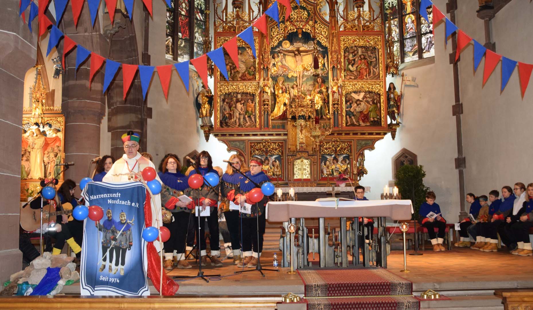 Am Sonntagmorgen fand ein Narrengottesdienst statt. Narrenrat und zahlreiche Glashansele gestalteten den Gottesdienst mit. Pfarrer Gerner hielt eine Predigt in gereimten Versen und bat, das Lachen auch in den Alltag zu tragen.
