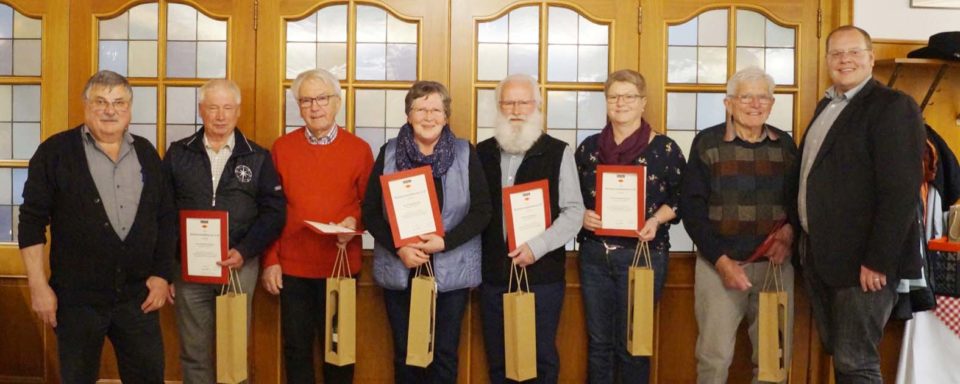 Besonders hervorgehoben wurde die langjährige Treue zum Verein von 19 Mitgliedern. Für 50-jährige Zugehörigkeit zur Schwarzwaldvereins-Ortsgruppe Nordrach konnten drei Mitglieder, für 40-jährige Zugehörigkeit 13 Mitglieder und für 25-jährige Zugehörigkeit drei Mitglieder geehrt werden.