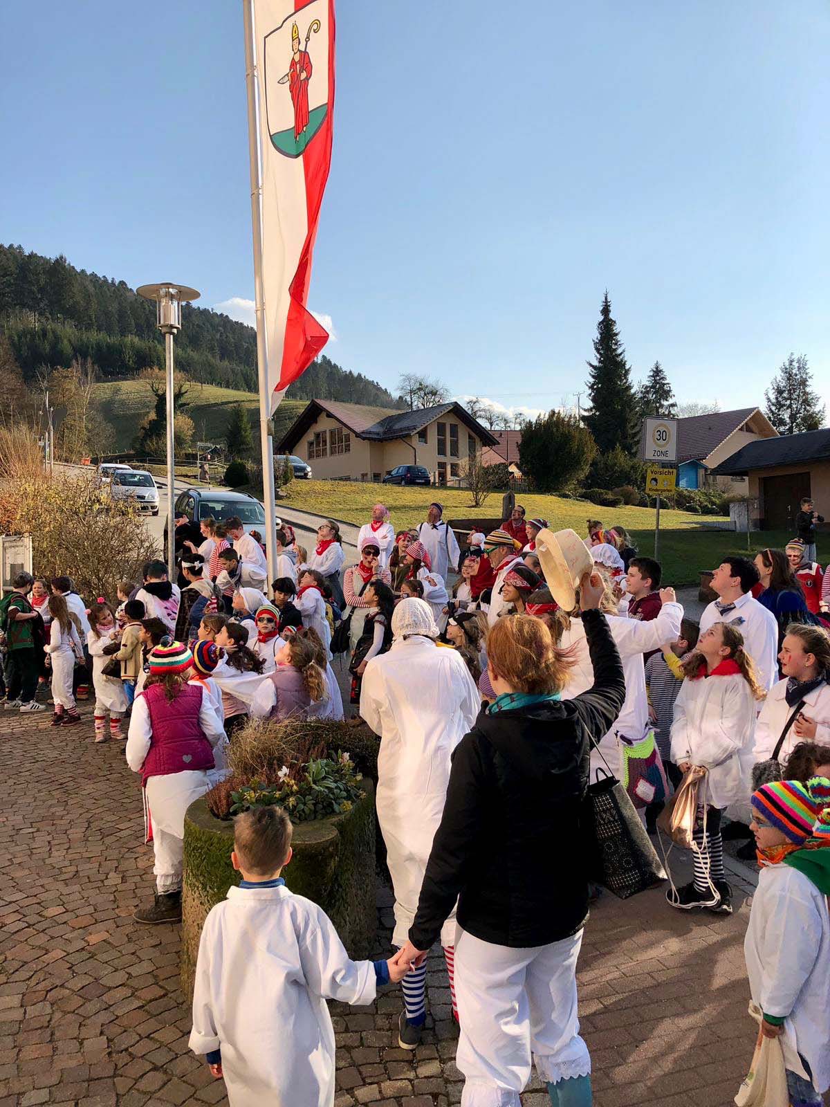 Am Fasentdienstag gegen 22 Uhr zogen die Narrenräte, Glashansel, zwei Musiker und die Versammlungsteilnehmer der »Närrischen Bürgerversammlung« zum Narrenfeuer beim Narrenbaum vor der Hansjakob-Halle. Zunftmeister Stefan Haas blickte auf die diesjährige Fasent zurück: »Sie ist eine lange, schöne und stimmungsvolle gewesen, die noch lange in Erinnerung bleiben wird!« Lassen wir sie in umgekehrter Reihenfolge Revue passieren: