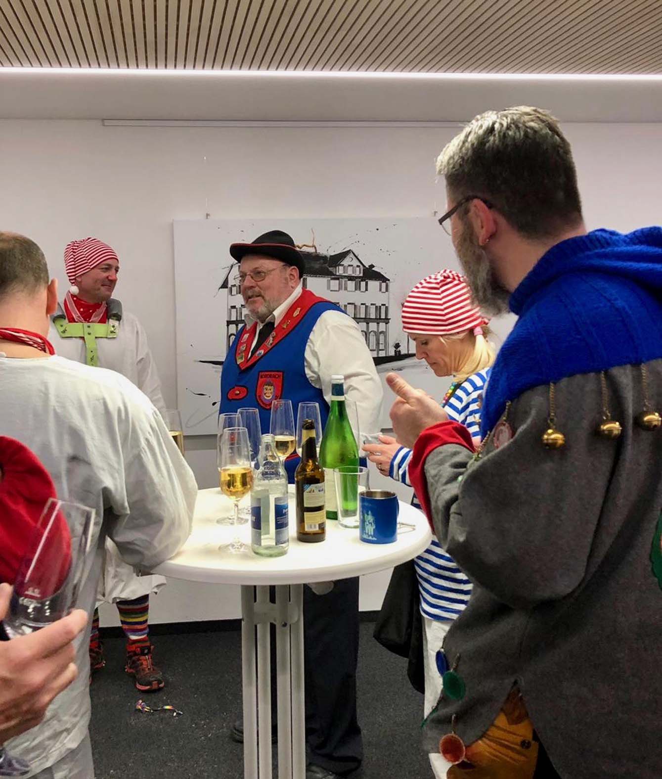 Anders als im letzten Jahr konnte die abendliche Rathauserstürmung wie gewohnt im nun neu sanierten Rathaus stattfinden. Nach einem feierlichen und musikalisch untermalten Einmarsch und kurzem Gerangel um den Rathausschlüssel, musste sich Bürgermeister Carsten Erhardt geschlagen geben und überreichte Zunftmeister Stefan Haas den symbolischen Schlüssel. Gemeinsam zog man später dann ins Zelt der Letschecker, wo noch bis in die späten Stunden ausgelassen gefeiert wurde.