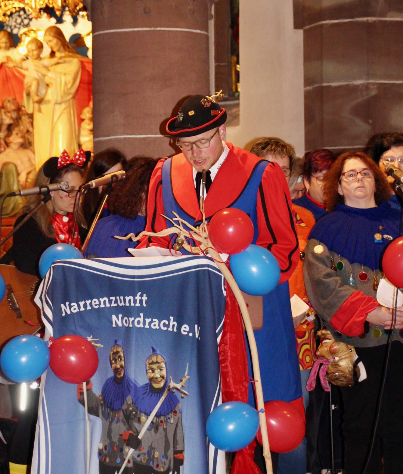 Mit der Narrenmesse gelang ein stimmungsvoller Beginn des Fasentsonntags mit toll ausgesuchten Liedern und Texten. Diese besannen darauf, dass es bei der Fasent darum gehe, gemeinsam zu feiern, seine alltäglichen Probleme und Sorgen hinter sich zu lassen und die Zeit mit anderen Menschen zu genießen. Nach dem Ende des Gottesdienstes ging es für die Nordracher Narren zum Fasentsonntagsumzug nach Hausach.