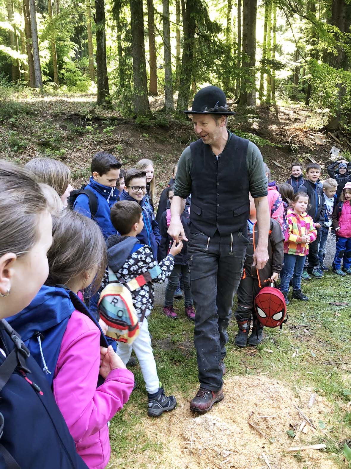 Das Märchen »Das Kalte Herz« von Wilhelm Hauff, das auch für Köhler Thomas Faißt eine besondere Bedeutung hat, konnte er den Grundschulkindern lebendig und eindrucksvoll erzählen. Die Geschichte vom Kohlenmunk-Peter, dem Holländer-Michel und dem Glasmännlein ließ die Augen der Grundschulkinder leuchten.