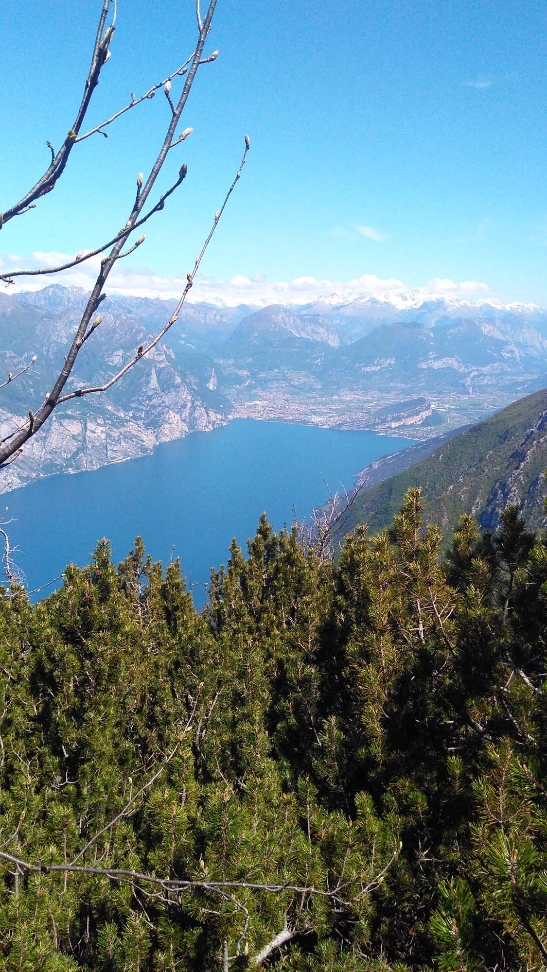 Das Wetter am Montagmorgen war schon etwas freundlicher, sodass man an diesem Tag vom Hotel aus zur Panoramatour Busatte – Tempesta aufbrach. Zuerst machten sich die Wanderer auf den Weg nach Nago, stellten dann aber fest, dass dies nicht der korrekte Weg sein kann und kehrten zum Parco del Busatte zurück. Von hier schlängelte sich der Weg etwa 100 Meter über dem See durch den felsigen von Eichen, Judasbäumen und Sträuchern bewachsen Hang dahin. Hinweistafeln entlang des Weges wiesen immer wieder auf die Tier- und Pflanzenwelt hin – leider nur auf Italienisch oder Englisch. Immer wieder blieben die Ausflügler stehen und genossen die herrlichen Ausblicke auf den Gardasee und die umliegenden Berge und Orte. Die steilen Felswände wurden von aufwändig installierten Treppenanlagen überwunden. Über 420 Treppenstufen waren zu bewältigen, bis es an der Kreuzung oberhalb von Tempesta nach links und wieder nach Torbole zurückging. Somit hatten sie nochmals die Gelegenheit, eine der Treppenanlagen – diesmal nach oben – zu überwinden. Dass einem auf diesem Weg Radfahrer entgegenkamen war schon sehr verwunderlich, mussten diese doch ihre Räder über die gesamten Treppenanlagen tragen. Trotz des wiedereinsetzenden Regens waren alle guter Dinge. Die Wege waren bestens ausgebaut und von allen gut zu bewältigen. In Torbole gab es Cappuccino zur Belohnung.