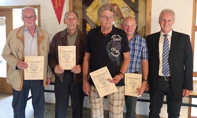 Der ASV hat rund 418 Mitglieder, einige davon sind seit Jahrzehnten Mitglied beim ASV. Bei der Jahreshauptversammlung wurde Leo Schätzle für 65-jährige Mitgliedschaft geehrt. Reiner Braun und Wofgang Börschig für 60 Jahre, für 50 Jahre Otto Roth. Für 40 Jahre, Bernd Baumann, Hubert Spitzmüller und Bernd Welle. Alle Geehrten erhielten ein Präsent mit Urkunde. Der Vorsitzende lobte ihre Treue zum Verein und bedankte sich.