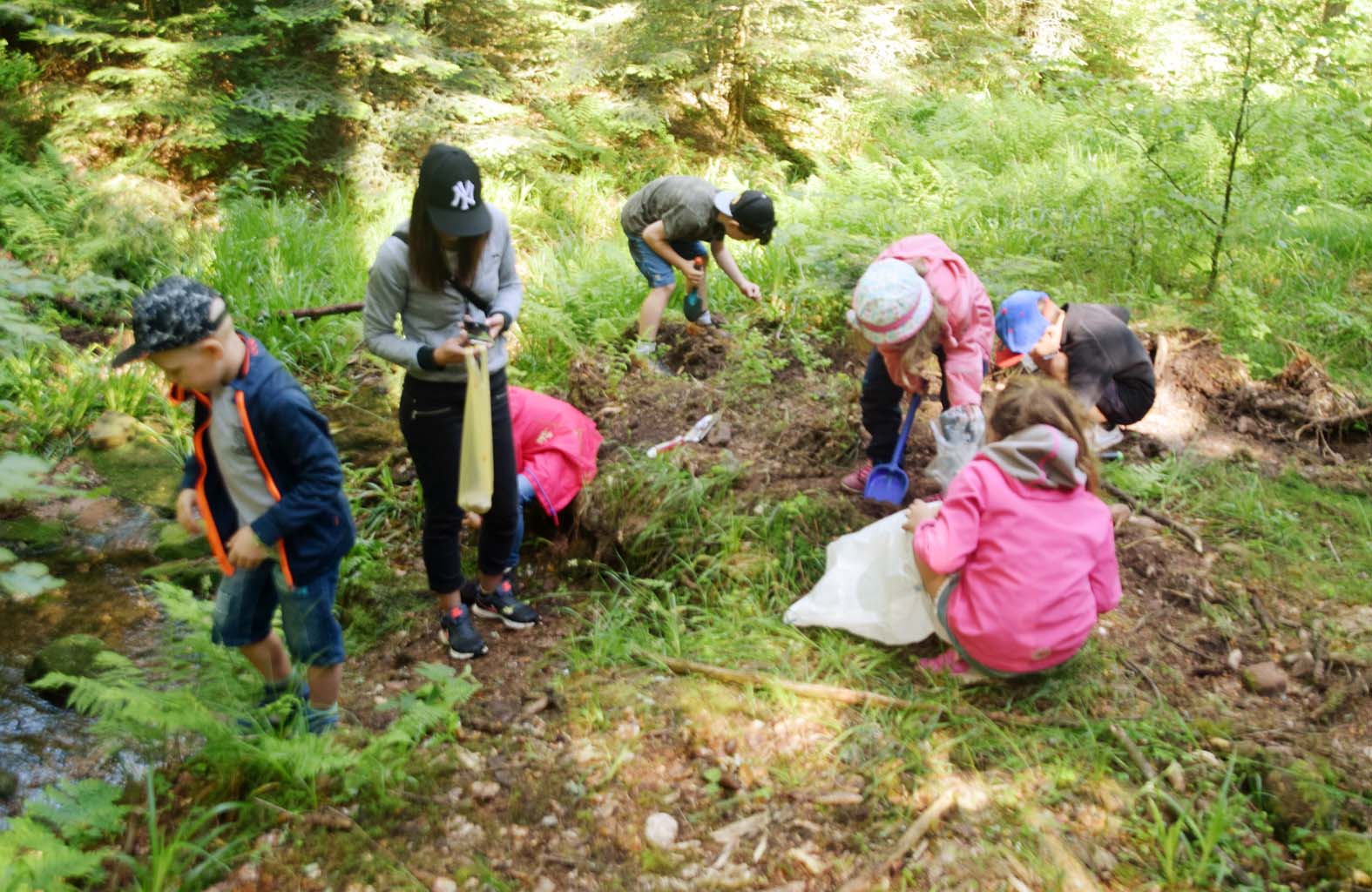 Am letzten Schultag vor den Pfingstferien erkundeten elf Nordracher Erstklässler die Höhenhöfe und Altglashütten. Die Erstklässler erwiesen sich nicht nur als erstklassige Wanderer, sondern waren auch mit Feuereifer dabei, im und am Glasbächlein nach Glasscherben zu suchen.