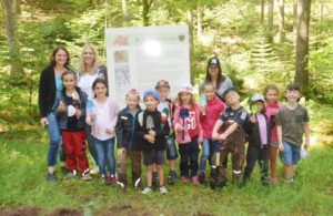 Die Kinder durften sich dann auf die Spurensuche nach den damaligen Bewohnern machen. Sie fanden zunächst die Viehtränke, die stets mit reichlich Wasser gefüllt ist. Dann erspähten die Kinder die Reste des Schäfersfeldhofs und die Zisterne.