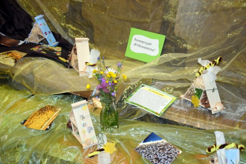 Am Freitagnachmittag fand zum Abschluss der Projektwoche ein Schulfest statt. In der Turnhalle waren all die Dinge ausgestellt, die die Kinder hergestellt und gebastelt hatten, darunter Portraits, Korbwaren, Webrahmen, Besen, Kerzen, Floße, Dekoration aus Holz, Puppen, Bienenhotels und Brote. Die Ausstellung fand bei Groß und Klein riesiges Interesse und alle waren voll des Lobes über diese Projektwoche. Der Elternbeirat und zahlreiche weitere Helfer hatten die ganze Woche über das Lehrerkollegium kräftig unterstützt.