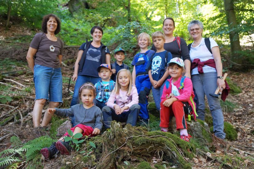 Bei herrlichem Wetter trafen sich sieben Kinder mit ihren Eltern und Omas im Moosbach. Vorstand Karl Oehler vom Nordracher Schwarzwaldverein erklärte nun die Entstehung der Ortenau in vielen Millionen Jahren.