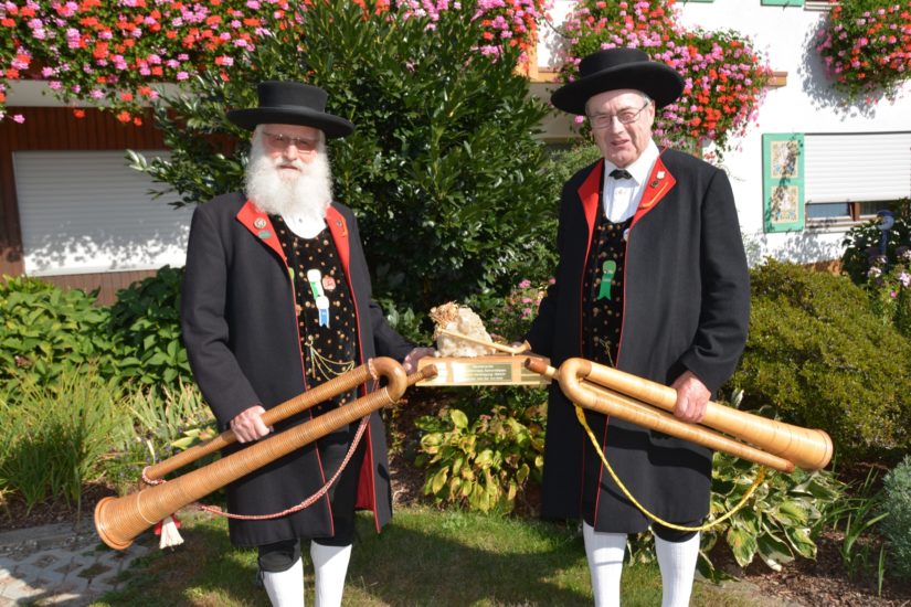 »Der Sieg ist noch höher zu bewerten als 2016«, berichten die beiden Alphornbläser, da in diesem Jahr auch die stärksten Mitbewerber am Start waren. Insgesamt nahmen im August 70 Musikerinnen und Musiker sowie 22 größere und kleinere Gruppen am Wertungsspiel des Verbandes in Aesch in Basel-Land teil. Im mehrstimmigen Wettbewerb belegte am Ende das »Echo vom Mühlstein« mit hauchdünnem Vorsprung den Platz 1. Die vier Erstplatzierten hatten alle zwischen 17 und 18 Wertungspunkte. Beim Einzelwettbewerb schaffte es Rolf Basler auf den 11. und Paul Boschert auf den 17. Platz.