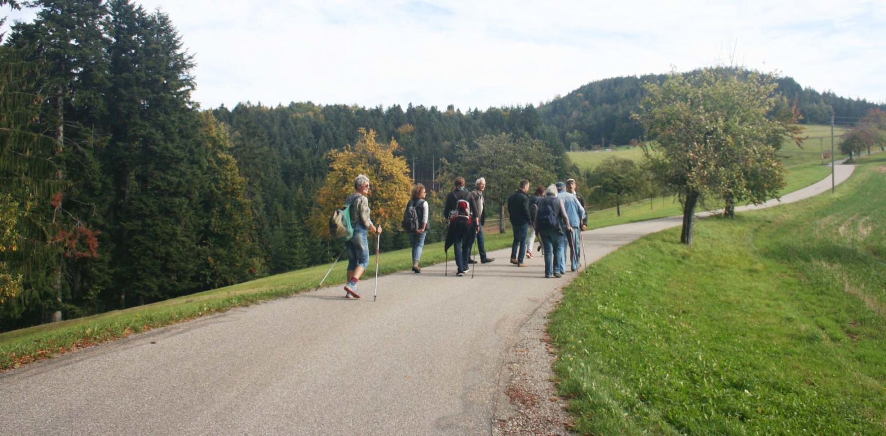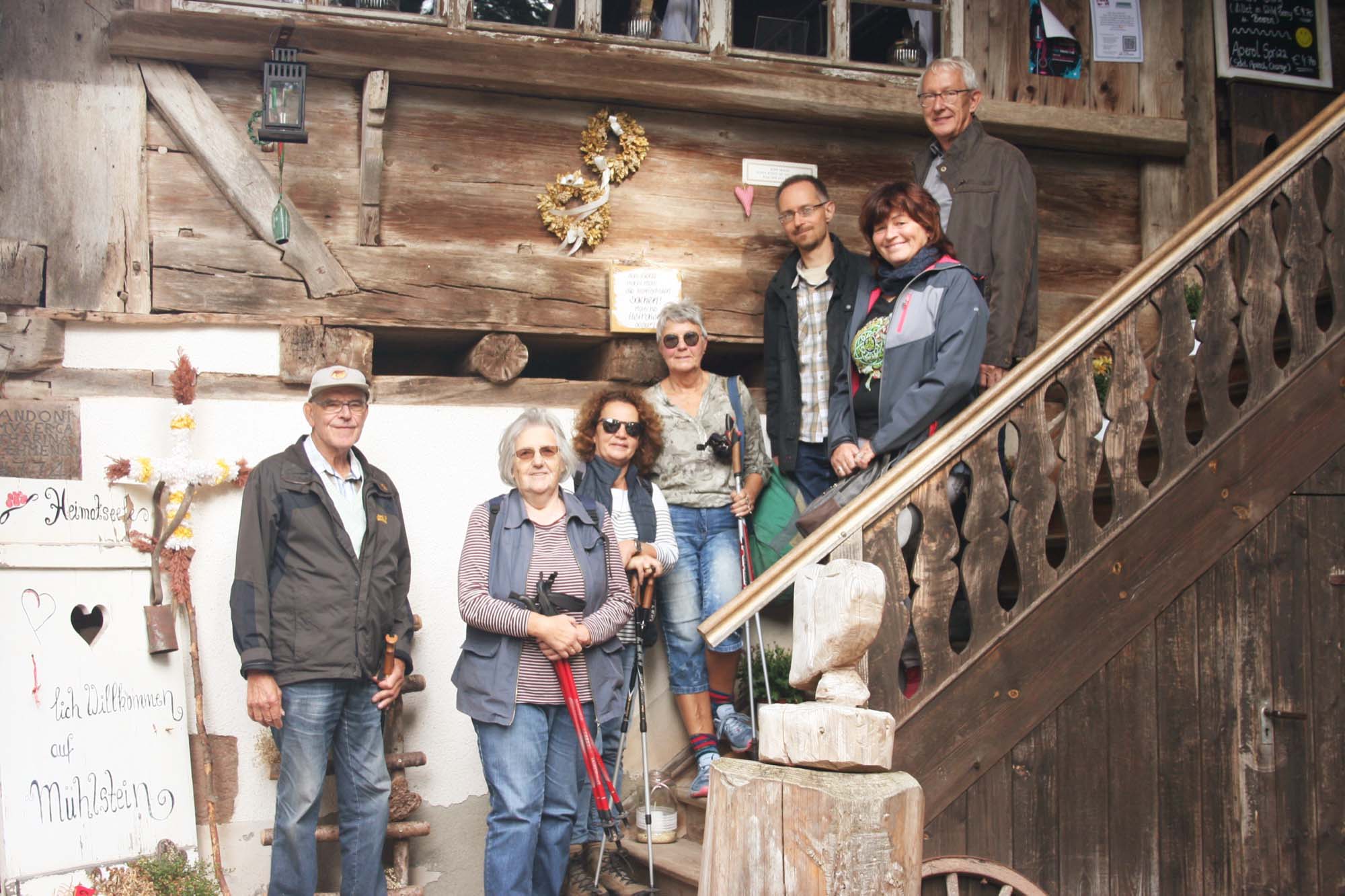 Josef Laifer führte die Wanderer über das Haldeneck, einst Lieblingsplatz der Vogts-Tochter Magdalene, zur Stollengrundhütte und weiter über die Simonsebene zurück zum Haldeneck. Mit vielen wunderbaren Ein- und Ausblicken in das schöne Nordrachtal endete die ca. zweistündige Tour wieder am Gasthaus »Vogt auf Mühlstein«.