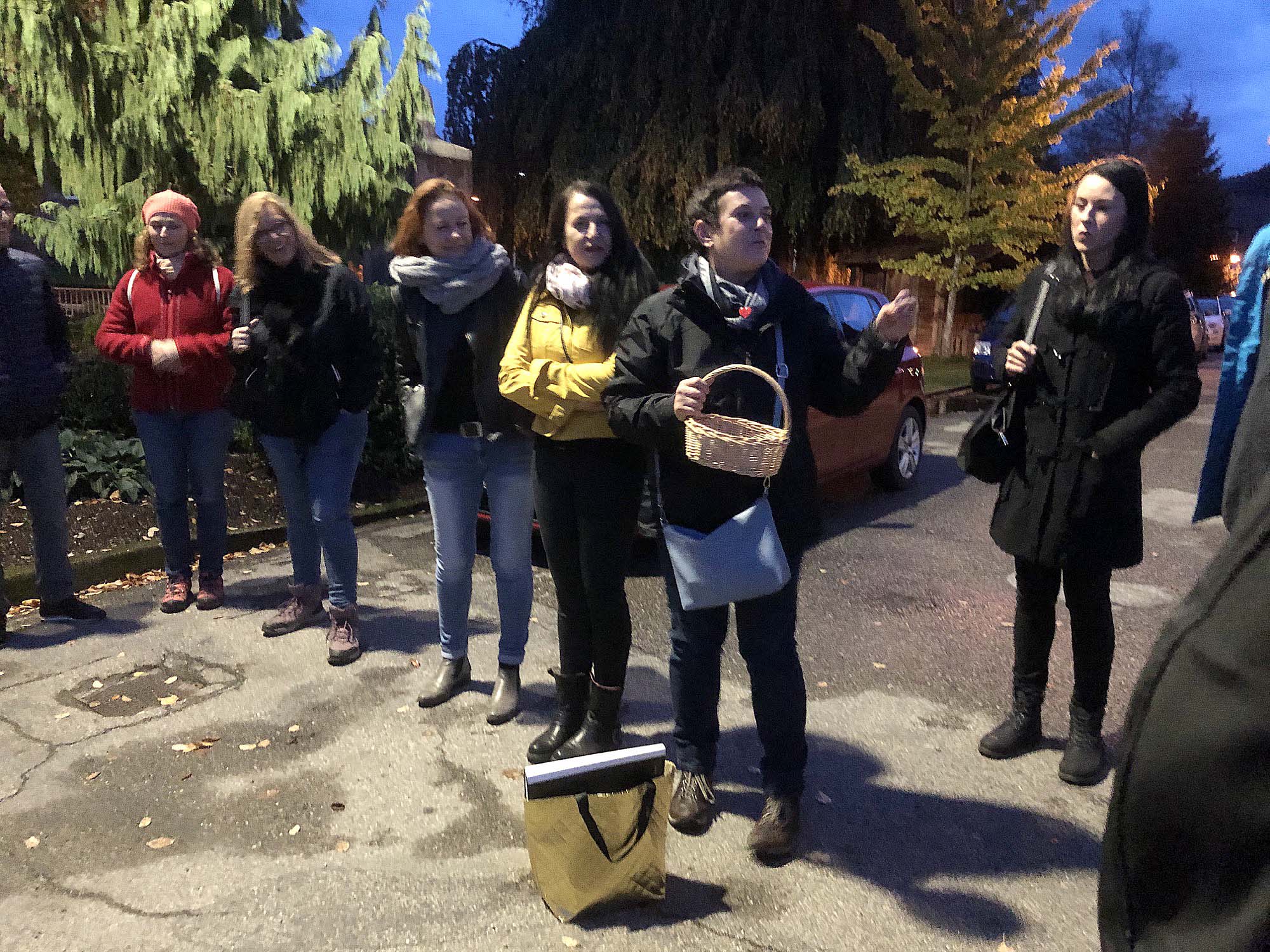 Fast 40 gespannte Besucher fanden sich zum »kulinarisch-romantischen Abendspaziergang« im Moospfaff-Monat Oktober vor der Kirche in Nordrach ein. Dort wurden Sie von Barbara Essig und Michaela Neuberger von der Touristen Info Nordrach im wahrsten Sinne des Wortes herzlich empfangen und mit kleinen roten, leuchtenden Herzen ausgestattet.
