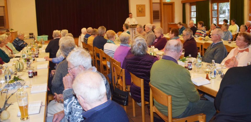 Rund fünfzig Nordracher Seniorinnen und Senioren trafen sich zur ersten Veranstaltung im Winterhalbjahr 2019/2020 im Pfarrheim. Pfarrer Bonaventura Gerner feierte mit den Senioren einen Gottesdienst, in dem er auch das Sakrament der Krankensalbung spendete.
