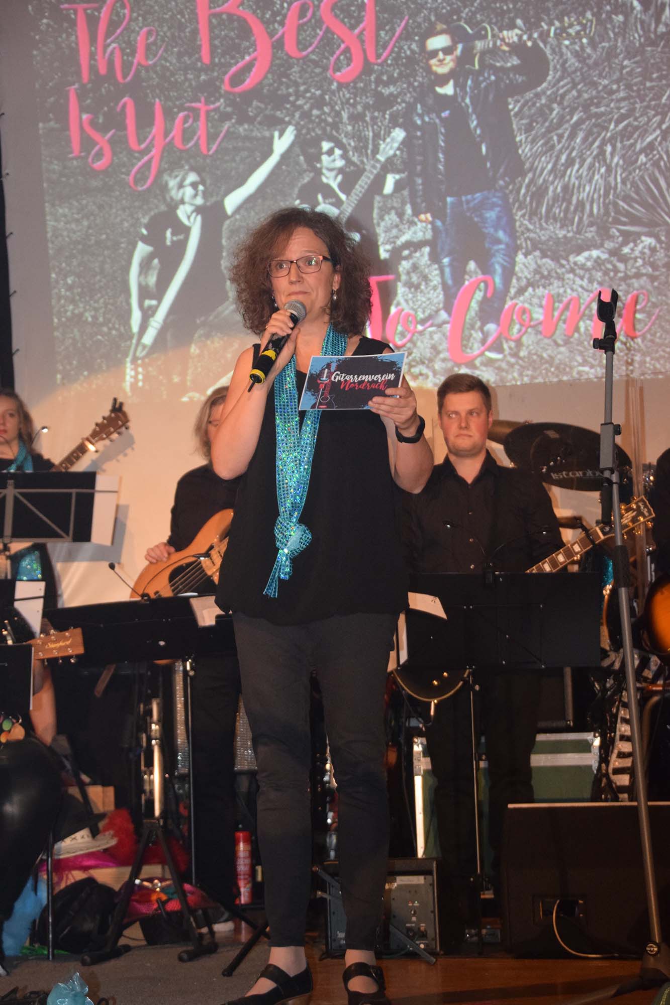 Eine Solistin sei auch noch erwähnt, nicht als Sängerin, sondern als Übersetzerin von englischen Song-Texten in den Nordracher Dialekt. Anja Neumaier präsentierte den Text von »You shook me all night long«, »mit Rücksicht auf die anwesenden Kinder nicht alles«, wie sie hinzufügte, und das Publikum hatte auch so seine helle Freude an der originellen Übersetzung.