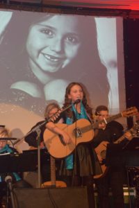 Die immer ausgereiftere Präsentation des Programms ist eine weitere Stärke des Gitarrenvereins. Dirigentin, Musikerinnen und Musiker verändern fast zu jedem Lied ihr Erscheinungsbild. Lichtwedel, Lichterketten, schwarze Hüte, rote Zylinder und Cowboyhüte, Federboas, Herzchen-Haarreif und Perücken, Kuscheltiere und kleine Fahnen, jedes Lied wird mit diesen Accessoires passend dargeboten und optisch aufbereitet. Eine perfekte Ton- und Lichttechnik mischte die Lieder ab und setzte die Aktiven in das rechte Licht. Der Clou waren auch in diesem Jahr die originellen Video-Filmchen, die auf einer großen Leinwand an der Rückwand der Bühne gezeigt wurden. Mitglieder des Gitarrenvereins hatten sie mit Witz und Einfallsreichtum aufgenommen, jeweils auf ein Lied abgestimmt. Man kann sich nicht vorstellen, dass die Präsentation noch gesteigert werden kann, einfach klasse!