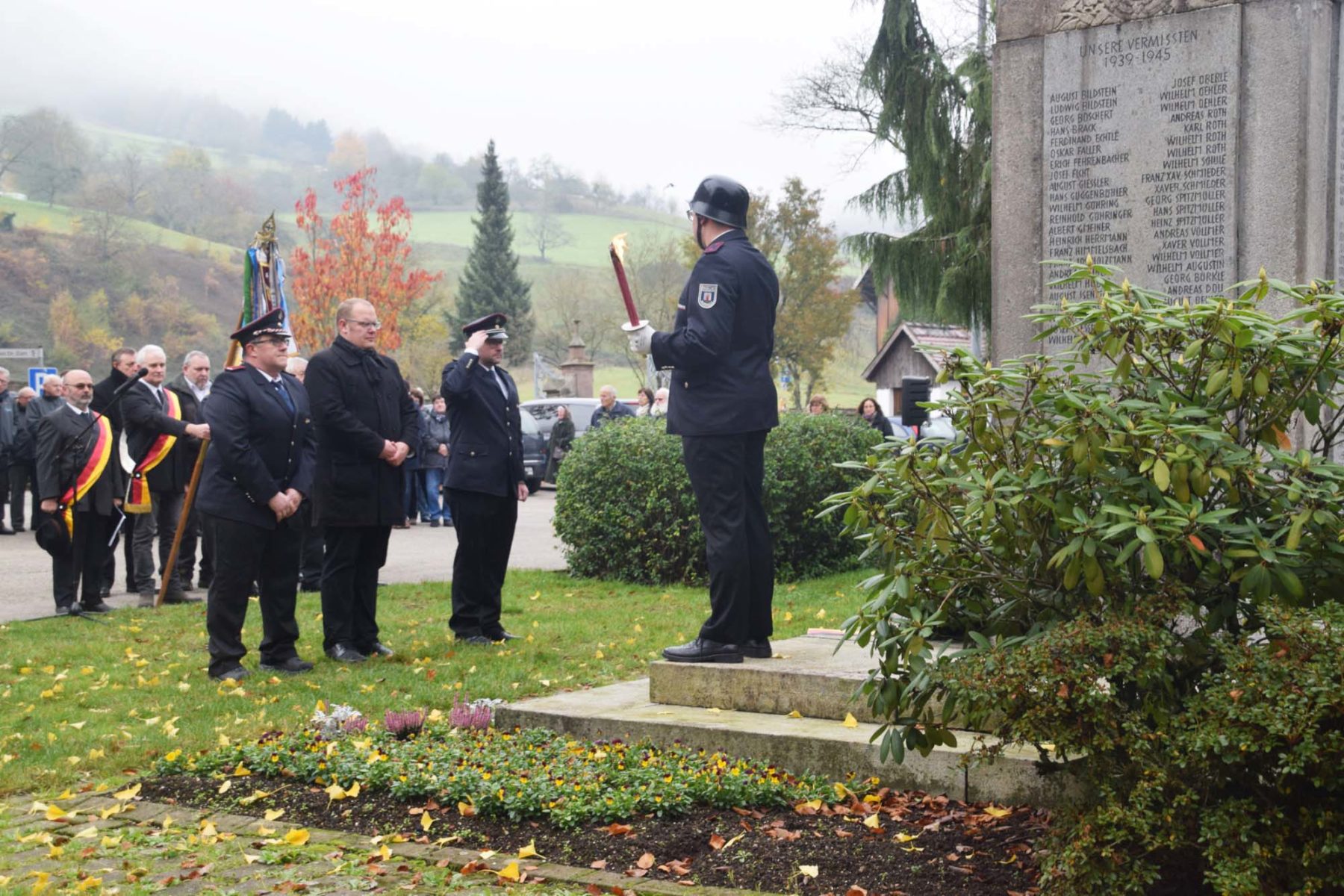 Traditionsgemäß gedachten Gemeinde und Vereine am Sonntagmorgen des Volkstrauertags der Opfer von Krieg und Gewaltherrschaft. Die Kameradschaft ehemaliger Soldaten und die Feuerwehr waren nach dem Gottesdienst vor dem Ehrenmal angetreten. Bürgermeister Carsten Erhardt hielt die Ansprache und legte einen Kranz am Ehrenmal nieder. Die Trachtenkapelle und der Chor der Klänge umrahmten die Feierstunde musikalisch.