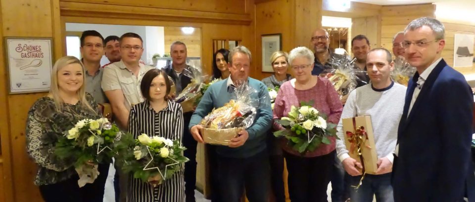 Erfahrung kann nicht genommen werden. Deshalb ist es für einen Betrieb wichtig, erfahrene langjährige Mitarbeiter zu haben. Das weiß auch Geschäftsführer Manuel Echtle: »Die Erfahrung in Verbindung mit Neugier bringt Innovation, und dass wir diese haben, darauf können wir stolz sein.« So galt sein Dank für eine tolle Leistung in 2019 in diesem Jahr natürlich den Jubilaren, aber auch dem ganzen Team des Unternehmens. Hubert Huber wurde nach fast 50 Jahren in den Ruhestand verabschiedet.