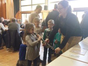 An der gut besuchten Instrumentenstraße konnten sich die jungen Besucher unter Anleitung informieren und das ein oder andere Musikinstrument selbst ausprobieren.