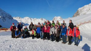 Auch die Schneeschuhwanderer, Winterwanderer und Skilangläufer kamen auf ihre Kosten. Schneeschuhwanderungen hinauf zur Bielerspitze (2.506 m) und rund um den Silvretta-Stausee sowie Winterwanderungen hinunter zum Silvretta-Dorf mit Einkehr im Madlenerhaus oder über die Großvermuntalpe waren geboten. Skilanglauf durchs Kleinvermunt nach Galtür und auf der Höhen- und Dammloipe auf 2.000 m Höhe umgeben von der Bergwelt der Silvretta ist immer ein Erlebnis. Geselligkeit herrschte beim musikalischen Abend mit Harmonika- und Alphornklängen, an dem auch so manches Lied erklang. Der Weckdienst morgens mit Alphornklängen von Paul Boschert und Rolf Basler ist sicherlich einmalig. Waren die Wetterprognosen für diese Woche nicht gerade berauschend, so konnten alle mit dem Ergebnis mehr als zufrieden sein.