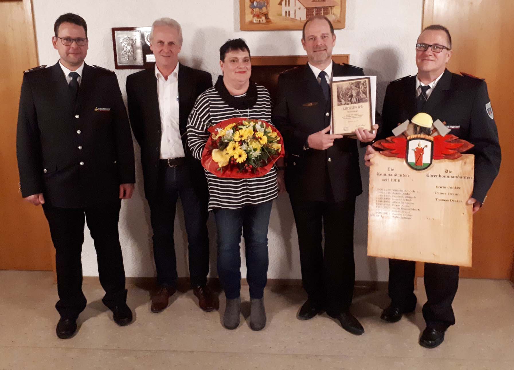 Erfreulicherweise konnten verdiente Feuerwehrangehörige für entsprechende Leistungen befördert bzw. für runde Dienstjubiläen geehrt werden. Thomas Decker ernannte man zudem zum Ehrenkommandanten.