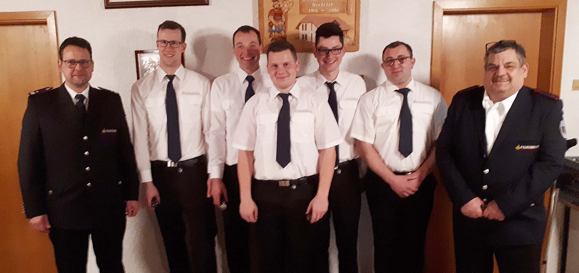 Nach erfolgreich absolvierten Lehrgängen und erreichten Dienstzeiten wurden Markus Faißt, Michael Huber, Frank Kitzinger, Lukas Lehmann, Manuel Nepple und Lukas Spitzmüller zum Oberfeuerwehrmann befördert. Im nächst höheren Dienstgrad, dem des Hauptfeuerwehrmannes, sind nun Florian Welle und Günter Schwarz.