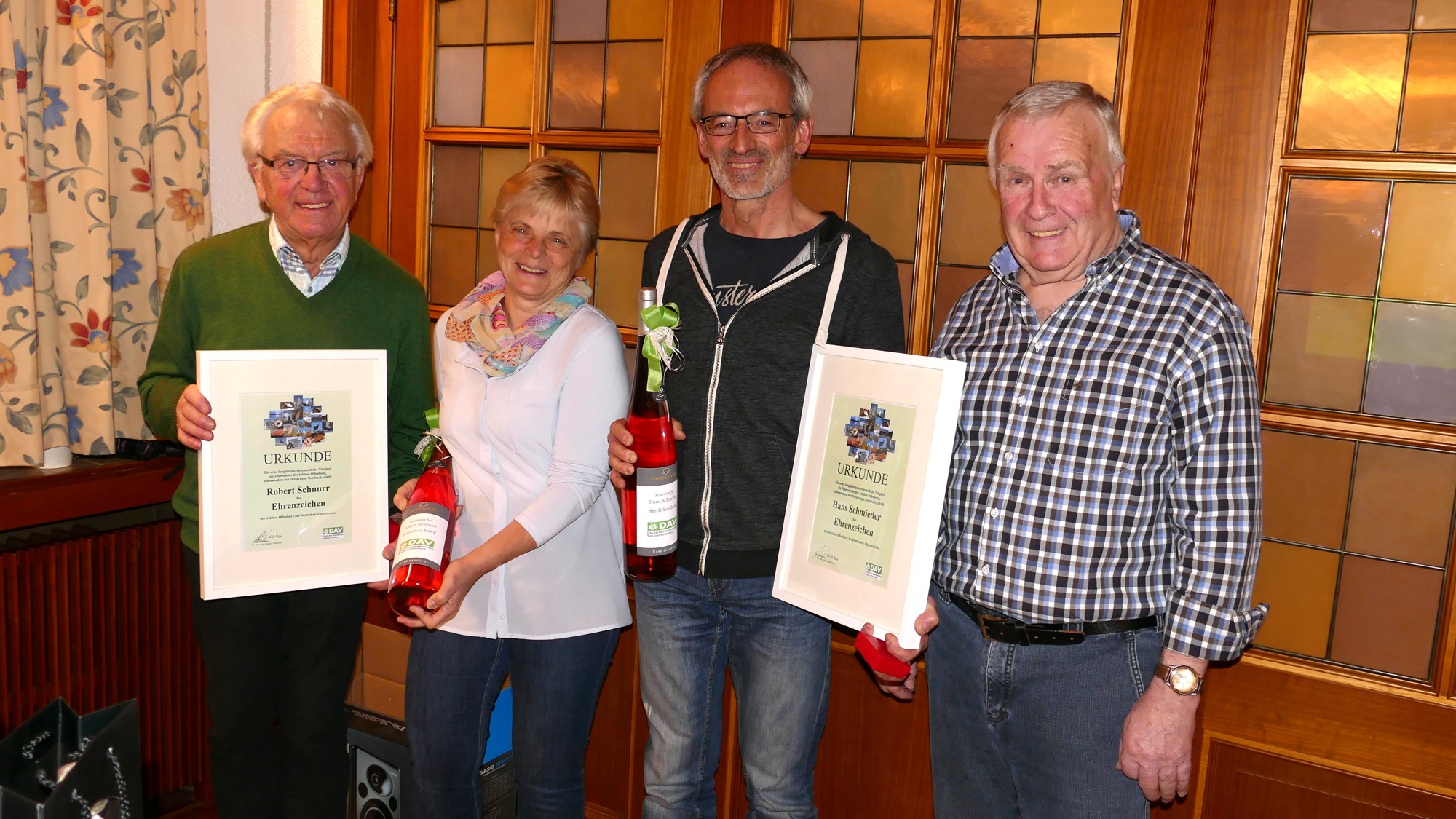 Unter dem Punkt »Ehrungen, die Mitglieder haben das Wort« konnte Gruppenleiter Reinhold Bieser zwei Mitglieder für besondere Verdienste um den Verein ehren. Dies waren Robert Schnurr und Hans Schmider.