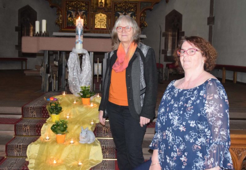 Auch an den Osterfeiertagen finden wegen der Pandemie keine Gottesdienste statt. Ingeborg Bruder und Heidi Lehmann hoffen, dass der Osterweg dazu anregen kann, trotzdem die Kirche zu besuchen und in Stille das Ostergeschehen zu feiern.