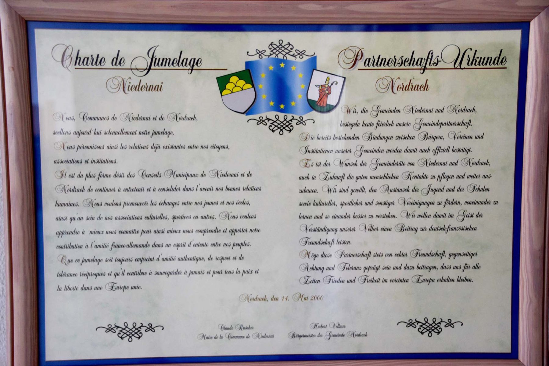 Am 13. und 14. Mai 2000 feierten die elsässische Gemeinde Niedernai und die badische Gemeinde Nordrach ihre Verbrüderung in Nordrach mit einem außergewöhnlichen Volksfest. Am 17. September 2000 folgte die nicht weniger stimmungsvolle Feier in Niedernai.