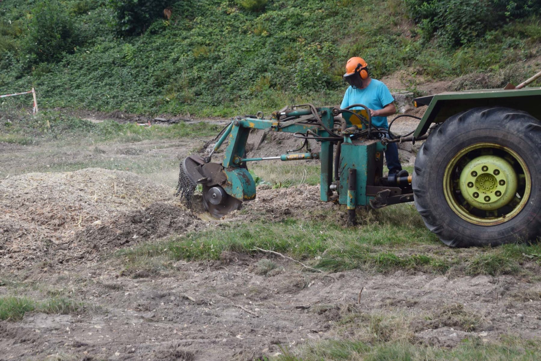 Bernd Repple beseitigte gleichzeitig mit seiner Fräse die Baumstümpfe. Die rund 90 Jahre alten Bäume, die früher das Bild des Kurparks geprägt hatten, waren bereits im vergangenen Herbst gefällt worden.
